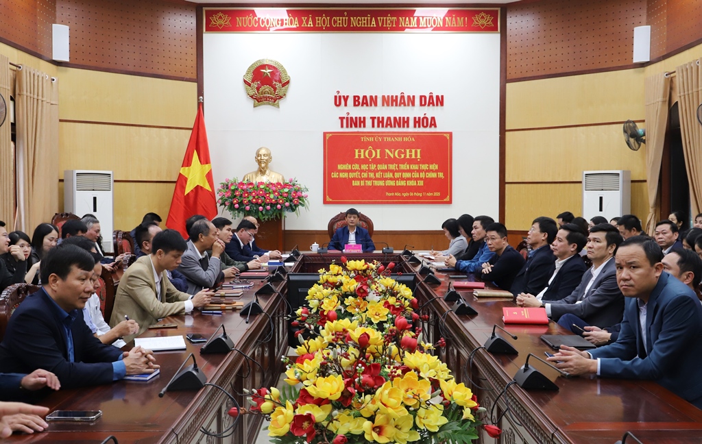 Chiều ngày 6/11/2025, Tỉnh ủy Thanh Hóa tổ chức hội nghị nghiên cứu, học tập, quán triệt, triển khai thực hiện các Nghị quyết, chỉ thị, kết luận, quy định mới của Bộ Chính trị, Ban Bí thư Trung ương Đảng khóa 13. Hội nghị được tổ chức trực tiếp kết hợp trực tuyến, kết nối từ điểm cầu Tỉnh ủy đến các Ban, sở, ngành, cơ quan cấp tỉnh và các xã, phường trong toàn tỉnh.