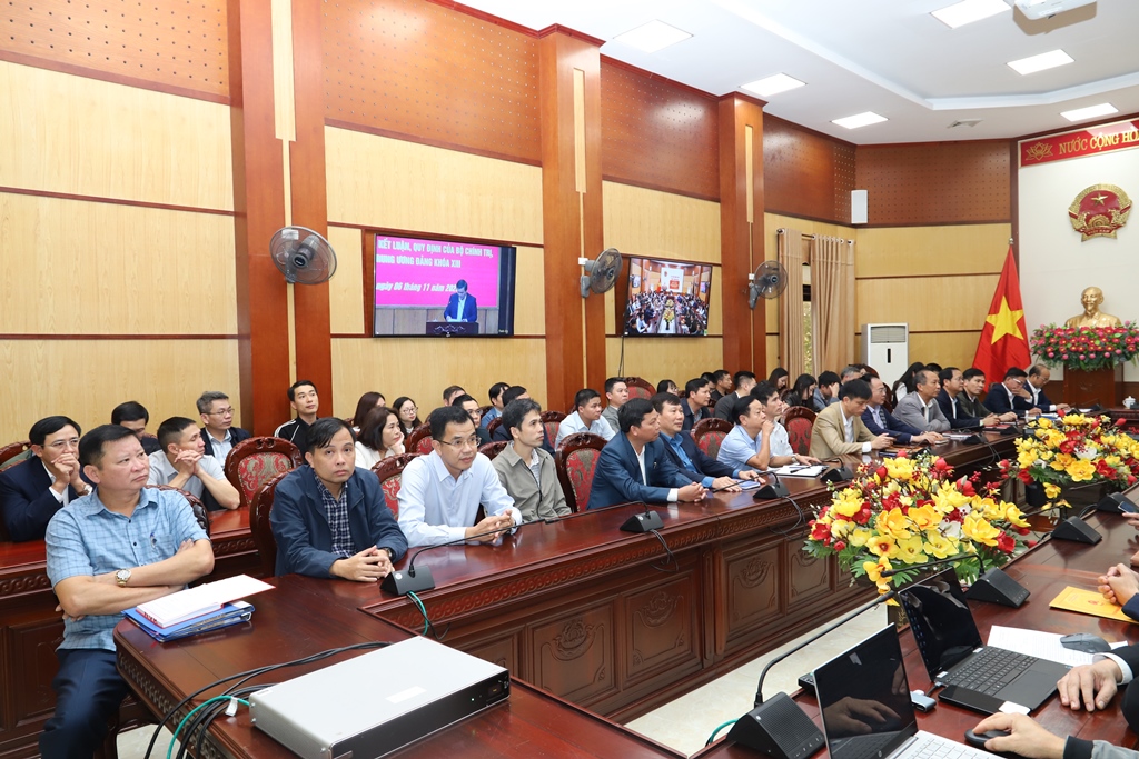 Tại hội nghị, các đại biểu được nghe các đồng chí lãnh đạo tỉnh quán triệt nội dung cốt lõi, những điểm mới của 3 nghị quyết, 3 chỉ thị, 6 kết luận, 2 quy định của Bộ Chính trị, Ban Bí thư Trung ương Đảng khóa XIII mới ban hành. Đặc biệt là các Nghị quyết: số 70-NQ/TW "về bảo đảm an ninh năng lượng quốc gia đến năm 2030, tầm nhìn đến năm 2045"; số 71-NQ/TW, ban hành cùng ngày 22/8/2025 "về đột phá phát triển giáo dục và đào tạo"; Nghị quyết số 72-NQ/TW ngày 8/9/2025 của Bộ Chính trị "về một số giải pháp đột phá, tăng cường bảo vệ, chăm sóc và nâng cao sức khỏe nhân dân"; Kết luận số 192-KL/TW ngày 19/9/2025 của Bộ Chính trị, Ban Bí thư "về thực hiện pháp luật về phân cấp, phân quyền, phân định thẩm quyền khi vận hành chính quyền địa phương 2 cấp"; Chỉ thị số 52-CT/TW ngày 3/10/2025 của Ban Bí thư "về việc thực hiện bảo hiểm y tế toàn dân trong giai đoạn mới"…